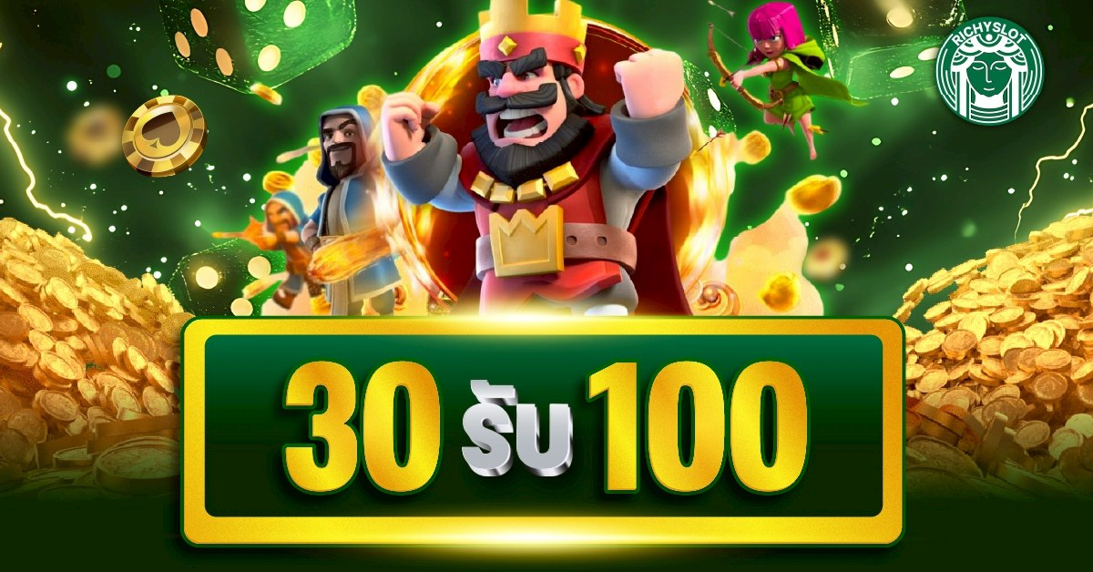 ฝาก 30 รับเพิ่มทันที 70 รวมรับ 100 บาท ถอนได้ 150